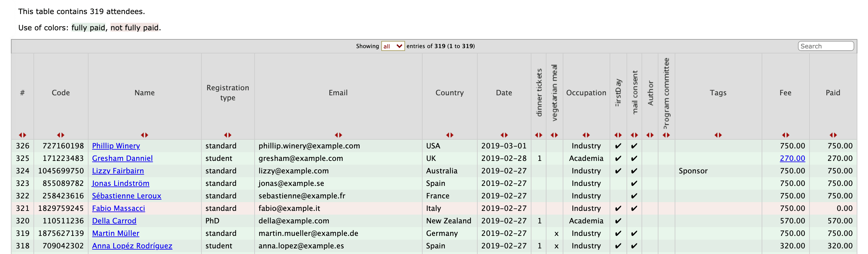 Registration form exampleList of attendees example