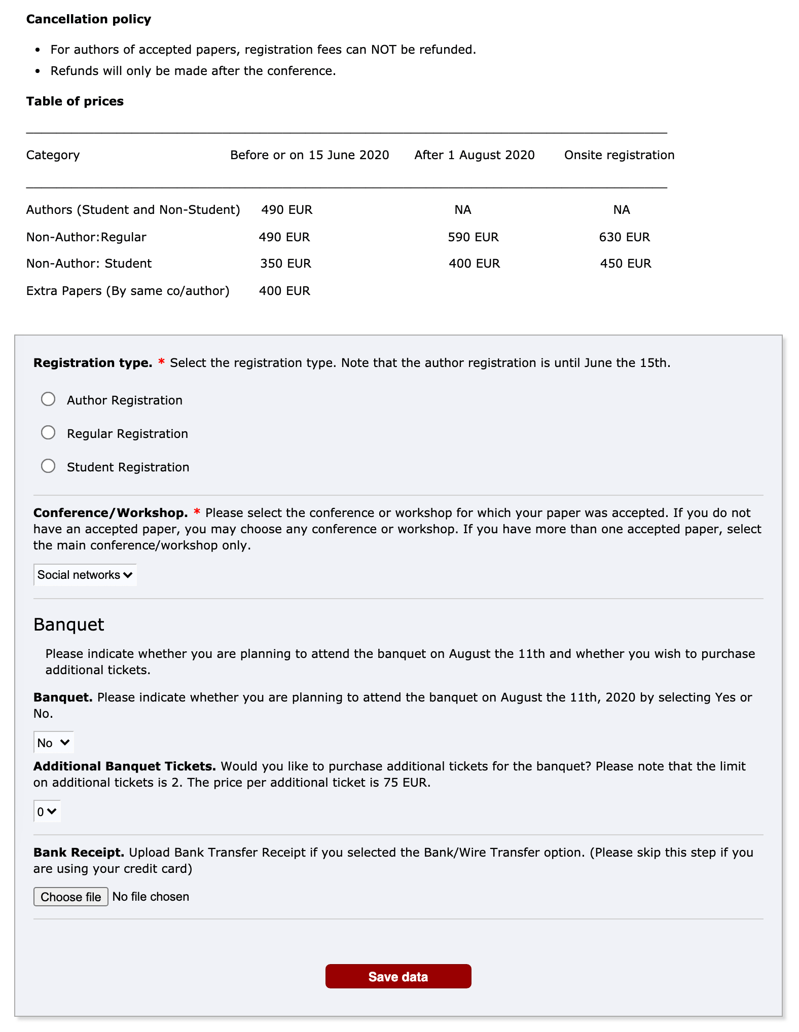 Different prices for different registration period and different registration types